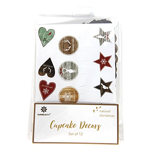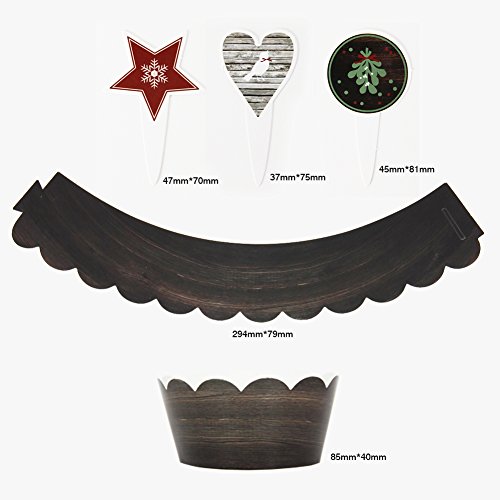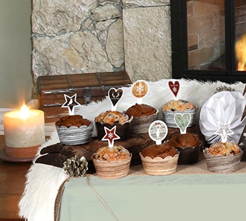 PAPERJAZZ 24pcs Christmas Paper Cupcake Toppers with Wrappers Xmas Party Decorations Kit