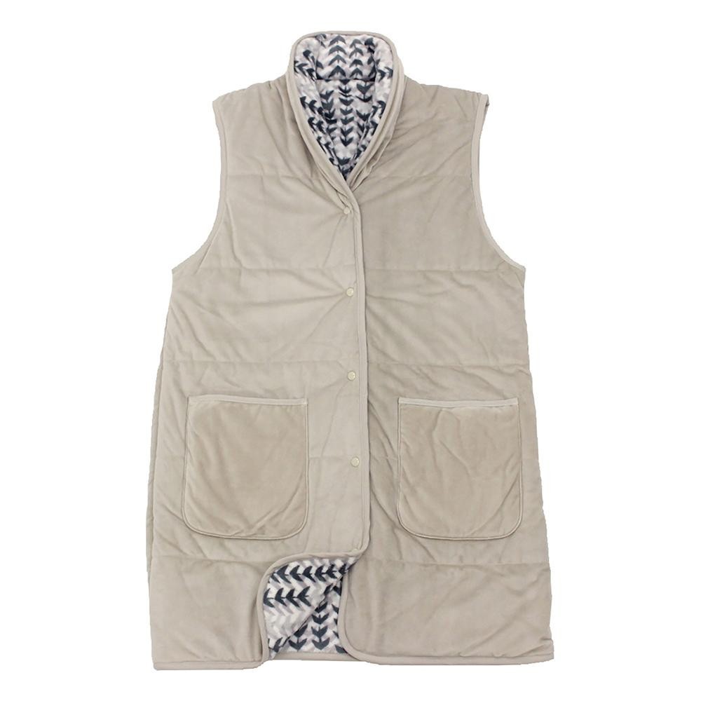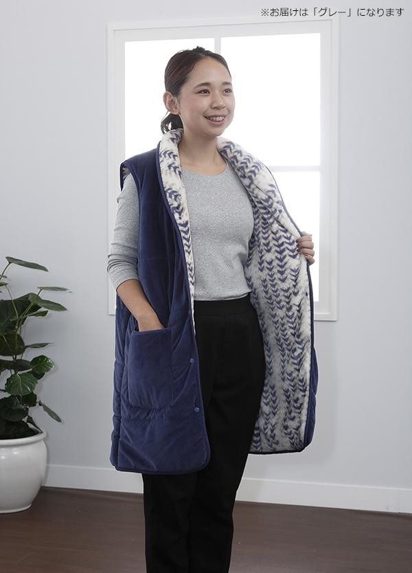 | ヒートラップの「発熱する機能わた」と「空気を含む縦構造」により、あたたかな空気をより多く含む保温力の高いロングベストです。 |