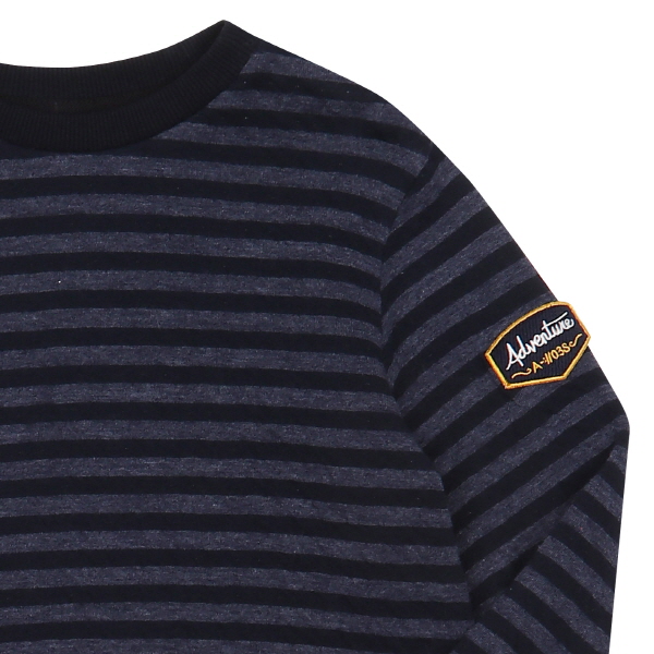 CP이중지 선염 스트라이프 맨투맨 티셔츠로, 퀼팅 조직으로 보온성이 우수하고, 몸판속 원단도 잔스트라이프로 포인트 준 유니아이템.