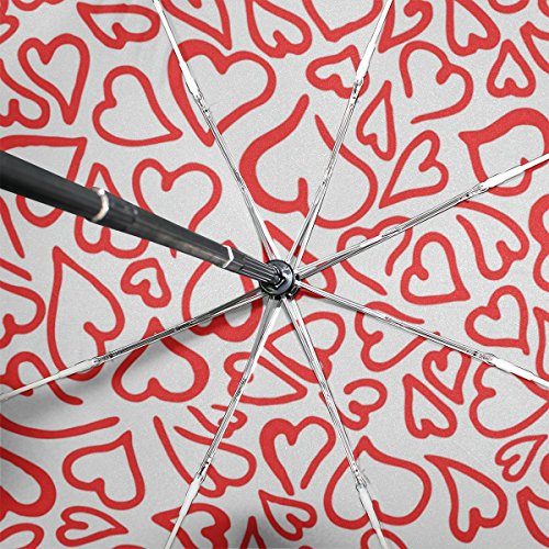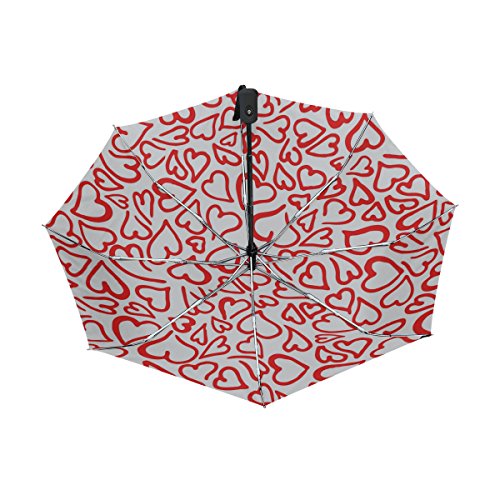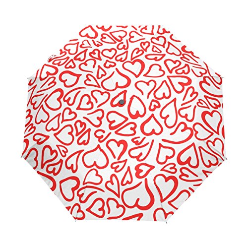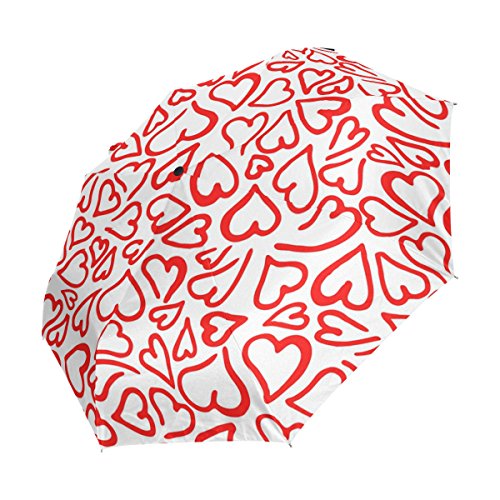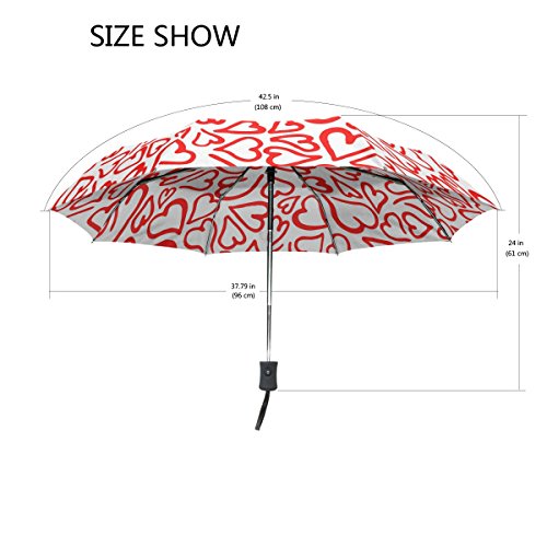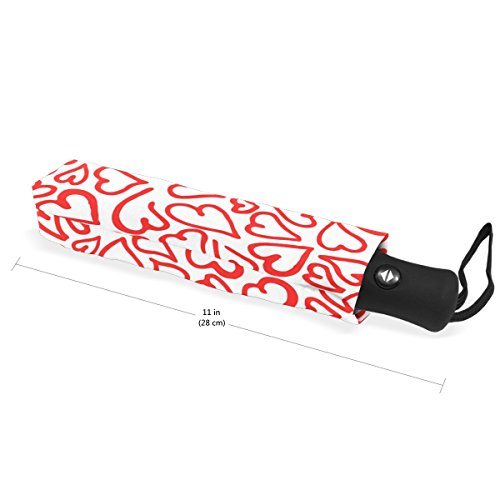 materials: made of 100% polyester pongee waterproof fabric. Weight: it is lightweight, 393g. Single-sided printing. Style: automatic open and close umbrella; foldable mini travel umbrella. Can be used on rainy and snowy day. Suitable for boys, girls, women and man. Feature: Light weight, small, portable. This Red Hearts Romantic Elegant Valentine folding umbrella is also a perfect Christmas gift, new year gift, and back to school gift. 0