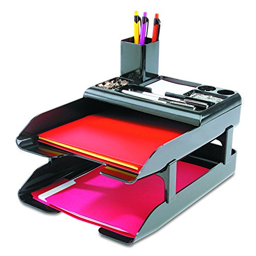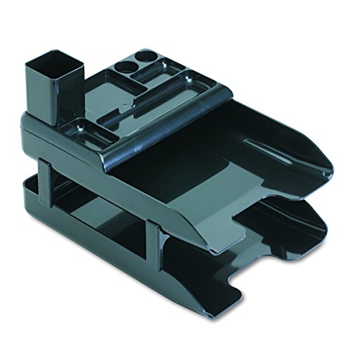 Deflecto 583004 Corporate Desk Trays, Metallic Black, 2 Trays, Organizer & Pencil Cup/Set