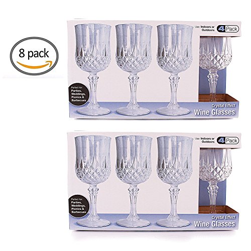 Party Bargains Plastic Wine Glasses | Elegant Hard Plastic Disposable Wine Glass Ideal for Parties and Wedding to Serve Champagne & Wine | Pack of 8