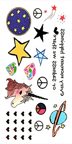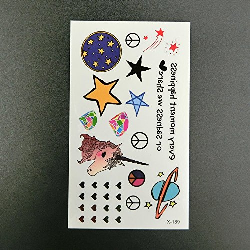 Oottati Small Cute Temporary Tattoo Unicorn Peace Star Diamond (2 Sheets)