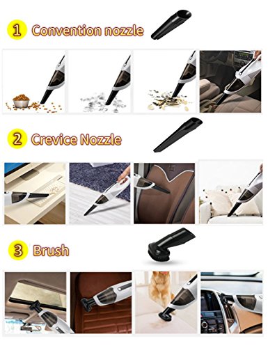 HIGH EFFICIENCY CLEAN--This cordless Handheld Vacuum comes with short, flat nozzle and a brush, it can can meet all you need, it's cleaning ability is up to 98%, higher efficiency in cleaning.
