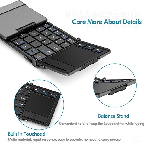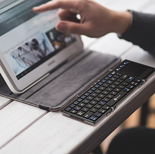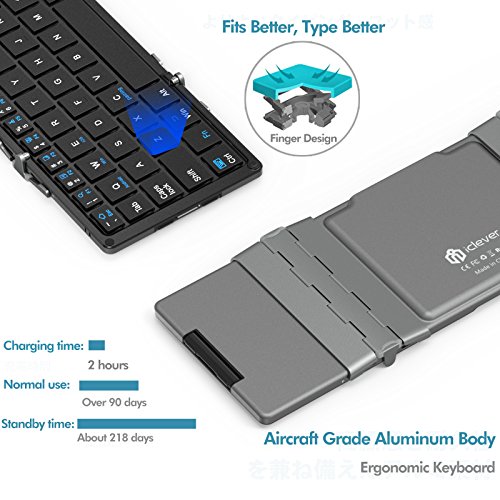 iClever Portable Tri-folding Bluetooth keyboard with Touchpad, (Snyc Up to 3 Devices), Ultra Slim Wireless Keyboard with Carry Pouch, Aluminum Alloy, Dark Grey