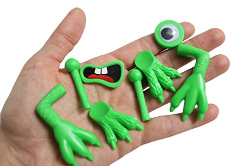 Includes 8-10 monster accessories and dough in a storage case. Simply mold the dough into any desired shape, insert the monster parts.