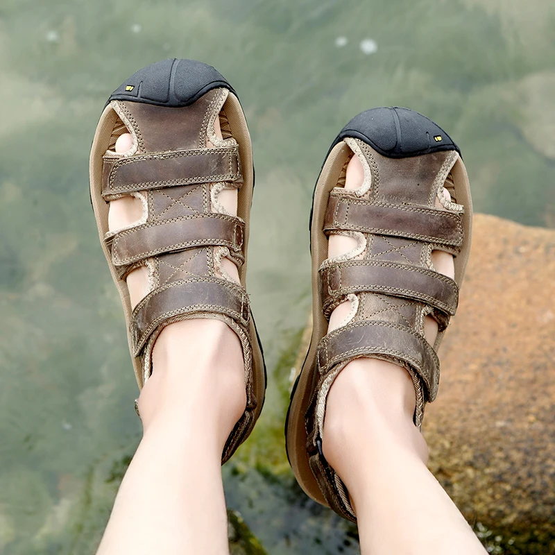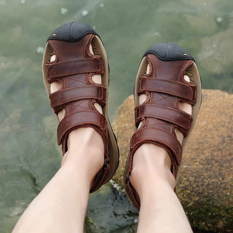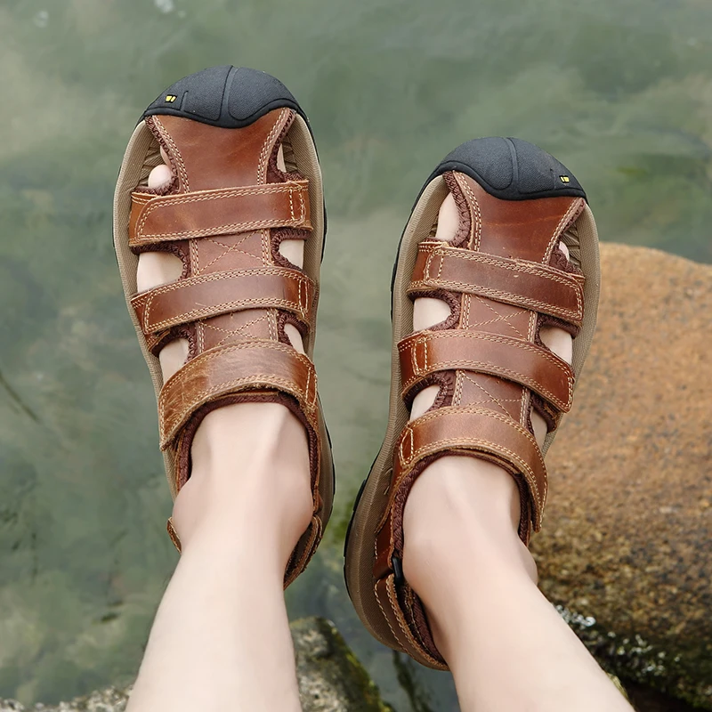 men leather sandals:outdoor shoes