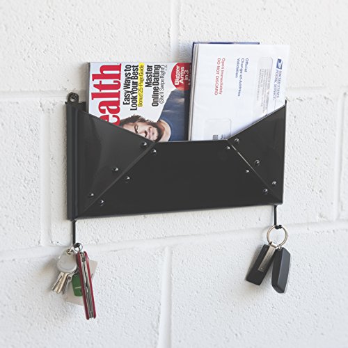 WALLNITURE Entryway Décor Envelope Shaped Mail Holder Key Rack Steel Black 14 Inch