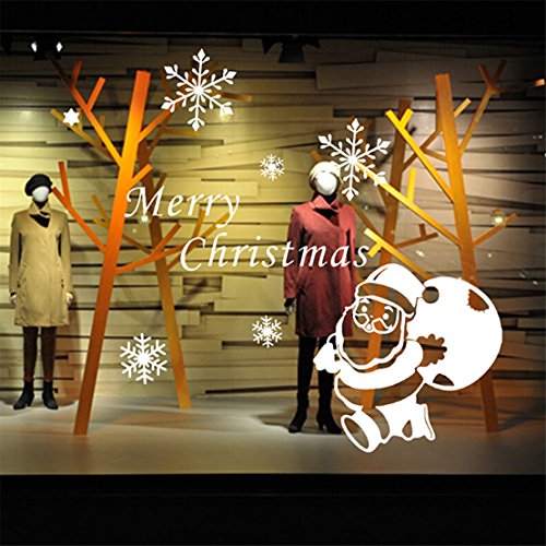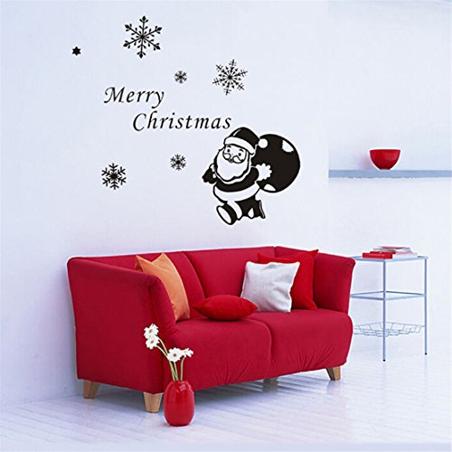 -. Title : FULLIN Wall Stickers Merry Christmas Santa Claus Presents Gift Wall Stickers Removable Mural Wall Stickers Art Cupboard Decal for Christmas Shop Room Decor