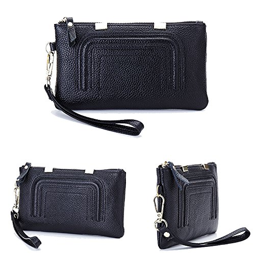 -. Title : SEALINF Women’s Leather Handbag Cowhide Clutch Purse Zipper Closure Phone Case