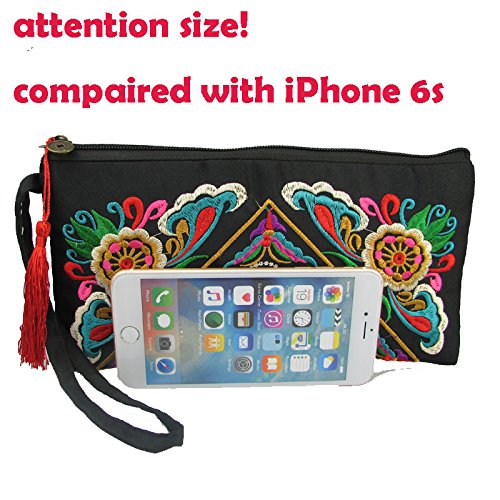 -. Title : Donalworld Women Embroidery Clutch Wrist Strap Small Bag