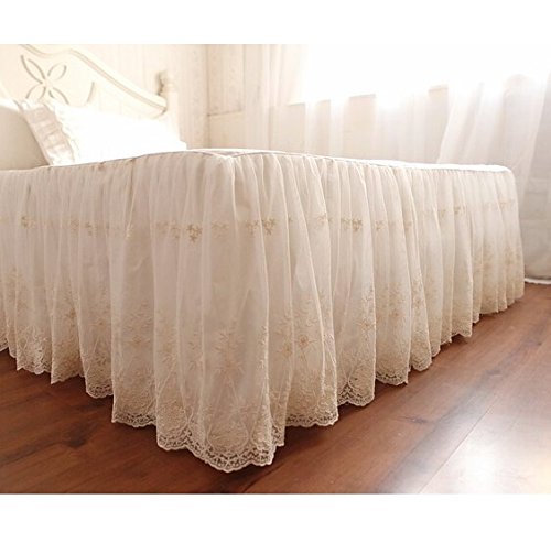 Brandream Queen Size Luxury White Lace Bed Skirt Romantic Girls Bed Sheets Elegant Teen Skirted Sheet
