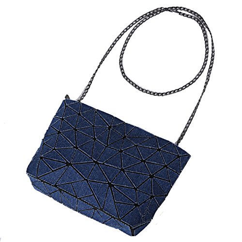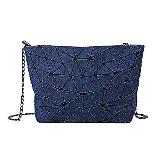 Fahion Geometric Canvas Chain Bag Lattice Folding Crossbody Shoulder Bag for Women
