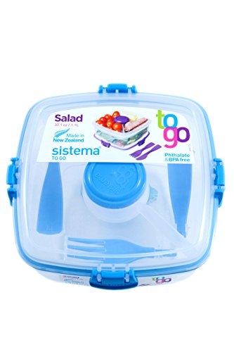 Sistema Salad To Go BPA Free Salad Container, Blue, 1-Pack