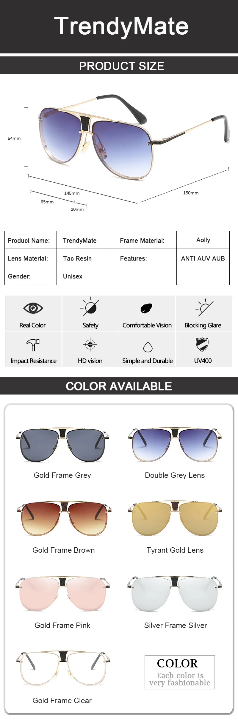 Sunglasses Function:UV400 Protection Against Harmful UVA/UVB RAYS