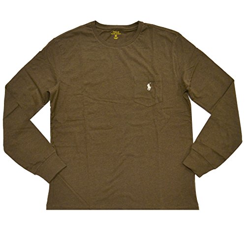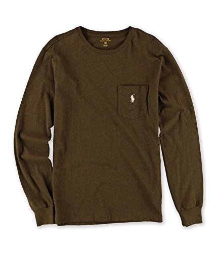 Polo Ralph Lauren Mens Pocket T Shirt Long Sleeve (Large, Brown Heather)