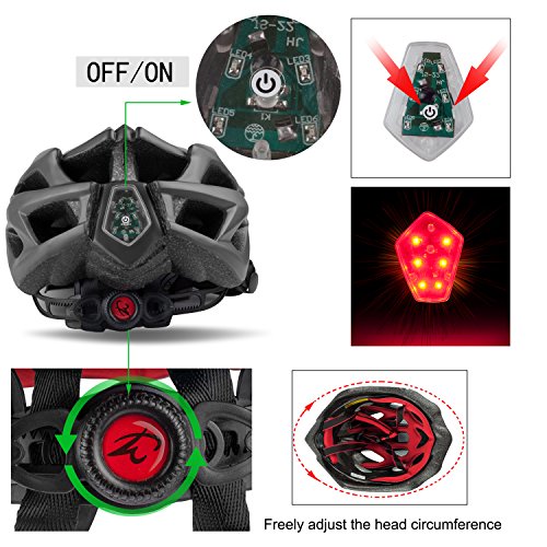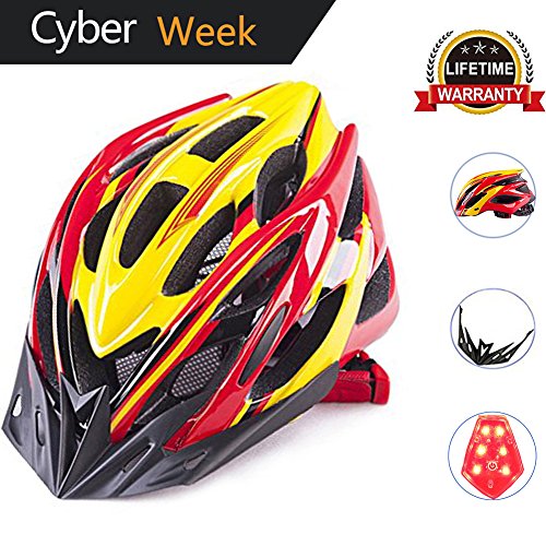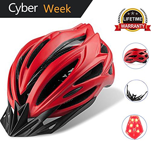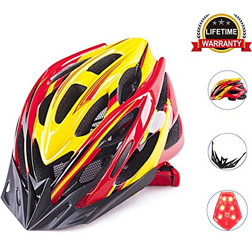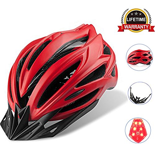 | Adult Bike Helmet Cycling Road Helmet with LED Safety Light, Mountain Bike Bicycle Adjustable H... |