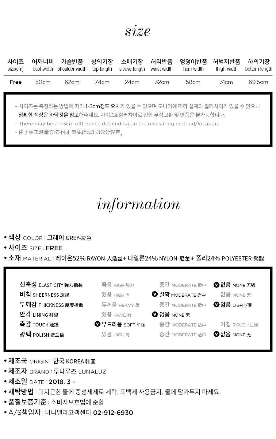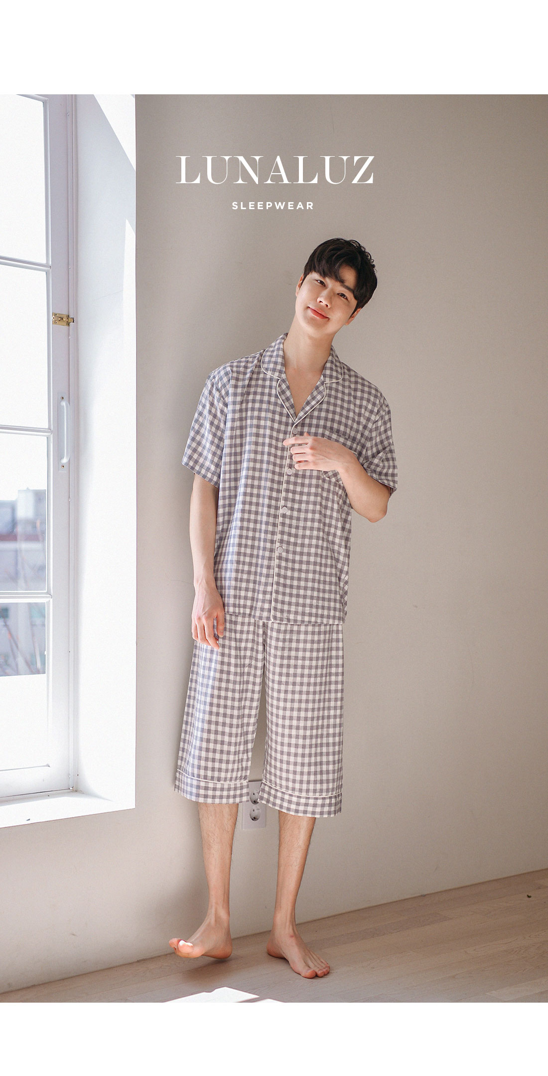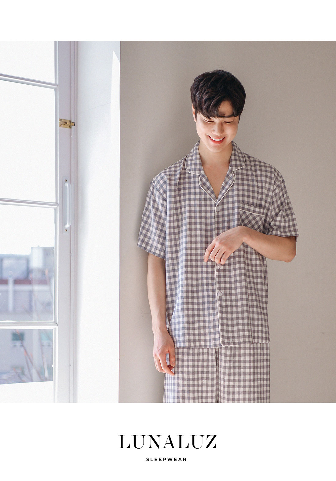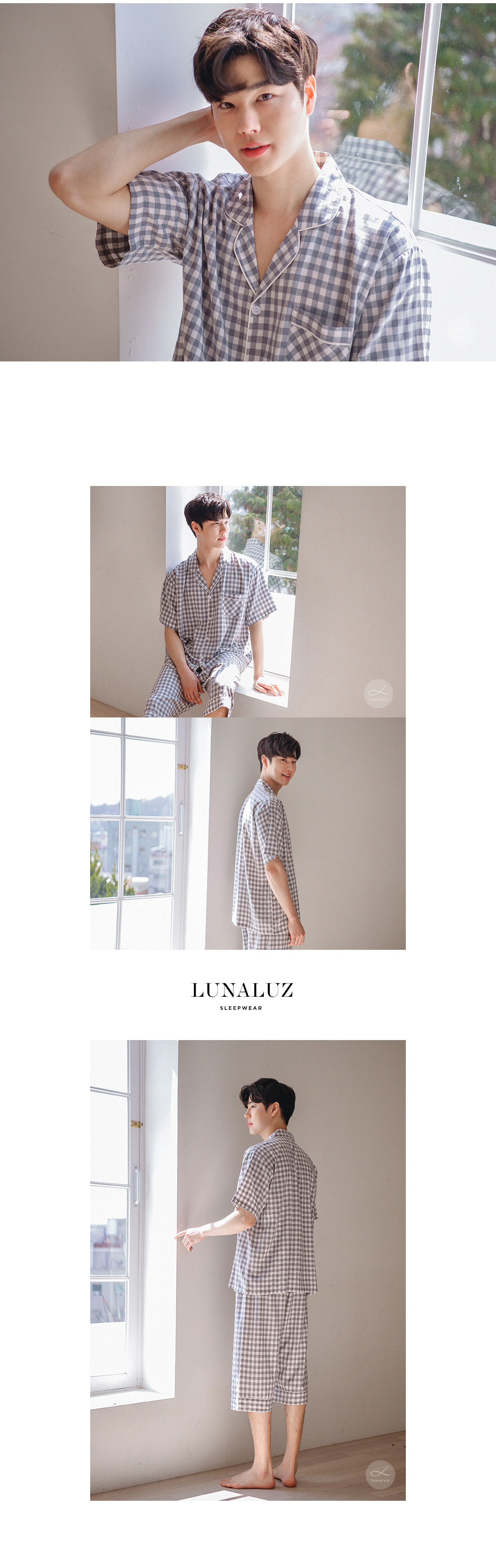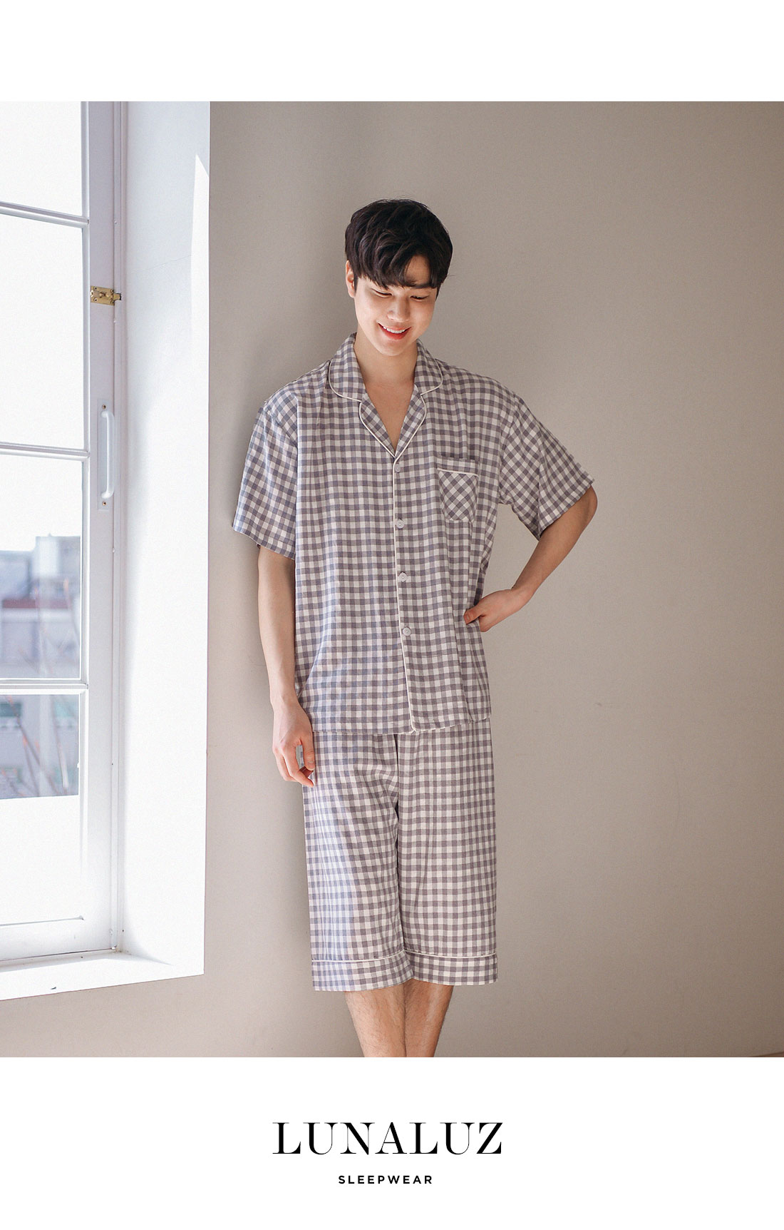 보기만 해도 편안해지는 그레이 체크 패턴의 파자마세트입니다. 직접 실을 염색시켜 짠 소재인 만큼 실루엣이나 소재 자체가 훨씬 고급스럽습니다. rayon52 nylon24 poly24 혼방으로 텍스쳐가 시원하고 흐늘거리며 고급스러운 분위기를 연출해줍니다. 탄탄하고 얇은 소재인 만큼 여름에 가볍게 착용하기 좋습니다. 단정하고 깔끔한 패턴으로 질리지 않고, 매 해 계속해서 손이 갈 스타일의 파자마세트입니다. 통기성이 우수해 상쾌하고 숙면을 취하기 좋은 쾌적한 느낌을 만들어 줍니다. 드레이프성을 가진 소재로 체형의 결점을 보완해주며 슬림한 효과를 준답니다. 여름에 입을 파자마세트로 적극 추천해드립니다. DETAIL 깔끔한 포켓 카라 파자마스타일로 군더더기 없는 단정한 느낌의 스타일입니다. 카라의 끝 부분에 아이보리 컬러의 파이핑을 클로징 버튼까지 꼼꼼하게 봉제해서 포인트를 주었습니다. 포켓은 원단 바이어스 처리해서 포인트를 주었습니다. 흐늘 거리는 부드러운 소재인 만큼 고난위도의 봉제기법이 들어간 세트입니다. 100%국내 제작으로 소재, 디자인, 봉제의 퀄리티가 높습니다. SIZE 평균 100size에게 적합한 free사이즈 입니다.