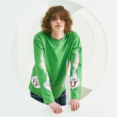 디자인 : 롱슬리브의 소매와 몸판에 루니툰 캐릭터의 얼굴을 각각 프린트하여 입었을때 소매와 몸판의 얼굴이 이어지도록 보이게 디자인.