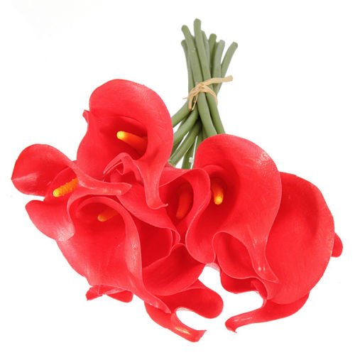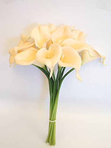 Real touch calla lily is one of the most realistic flower of the artificial flower market. 10pc per bunch,each stem of calla lily bloom Measures 2.25" Diameter x 2.5" Tall with 1" Tip and 11"stem. Perfect for using as bouquet or cut apart to make boutonnieres