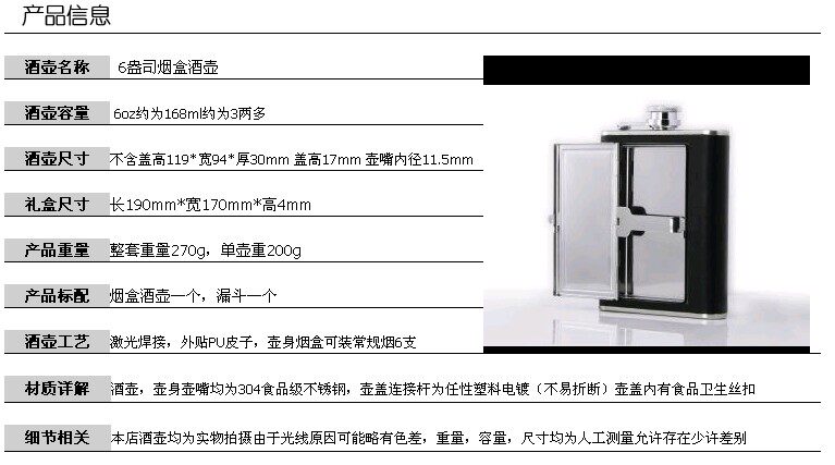 Fine dual-use jug, 60z capacity, can hold 6 cigarettes.