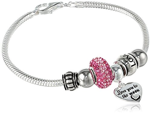 Bracelet featuring crystal and sterling silver beads with engraved heart charm