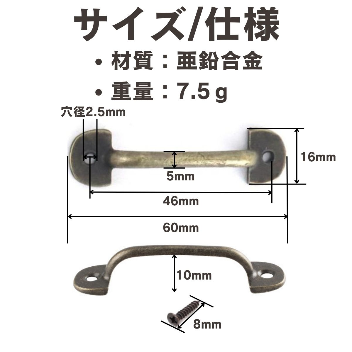 【20個セット】 アンティーク 取っ手 つまみ ハンドル イエローブロンズ 長さ60mm 幅16mm 家具 DIY 修理