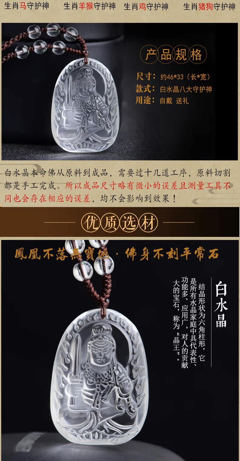 开光天然白水晶不动尊菩萨吊坠不动明王佛属鸡守护神男女项坠饰品