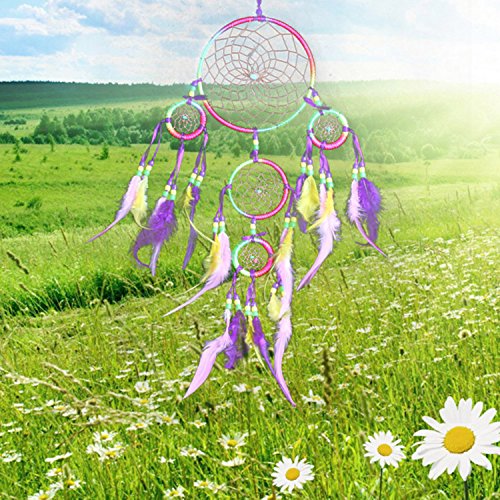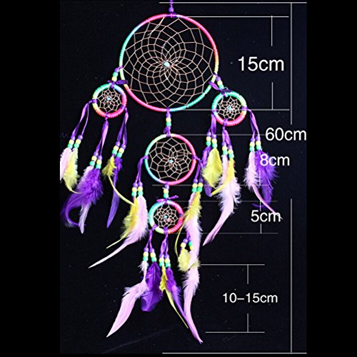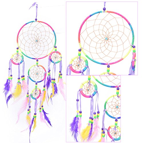 - Material: the colorful dream catcher is made of Iron Ring,satin line, feather, polyester line and plastic beads