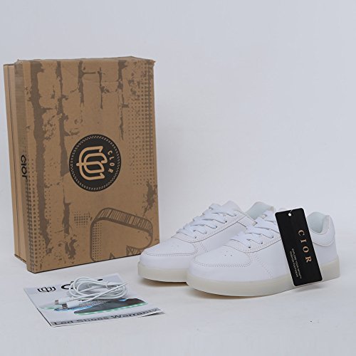 Binding : Apparel Product Description CIOR LED sneakers are suitable for performances, cosplay, night outs and everyday use. The LED lights around the sole of these fashion sneakers make you more attractive. When the button is switched on, the LED lights are turned on and give colorful bright lights. The LED light can be recharged through the USB sort. With 2-3 hour's charging, it can last for 8-10 hours.
