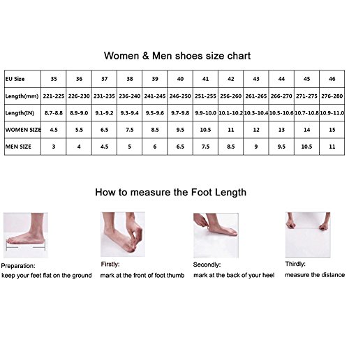 Size chart: 4.5 B(M) US Women/3 D(M) US Men = EU size 35 = Shoes length 225mm Fit foot length 221-225mm/8.7-8.8in 5.5 B(M) US Women/4 D(M) US Men = EU size 36 = Shoes length 230mm Fit foot length 226-230mm/8.9-9.0in 6.5 B(M) US Women/4.5 D(M) US Men = EU size 37 = Shoes length 235mm Fit foot length 231-235mm/9.1-9.2in 7.5 B(M) US Women/5 D(M) US Men = EU size 38 = Shoes length 240mm Fit foot length 236-240mm/9.3-9.4in 8.5 B(M) US Women/6 D(M) US Men = EU size 39 = Shoes length 245mm Fit foot length 241-245mm/9.5-9.6in 9.5 B(M) US Women/6.5 D(M) US Men = EU size 40 = Shoes length 250mm Fit foot length 246-250mm/9.7-9.8in 10.5 B(M) US Women/7.5 D(M) US Men = EU size 41 = Shoes length 255mm Fit foot length 251-255mm/9.9-10.0in 11 B(M) US Women/8.5 D(M) US Men = EU size 42 = Shoes length 260mm Fit foot length 256-260mm/10.1-10.2in 12 B(M) US Women/9 D(M) US Men = EU size 43 = Shoes length 265mm Fit foot length 261-265mm/10.3-10.4in 13 B(M) US Women/9.5 D(M) US Men = EU size 44 = Shoes length 270mm Fit foot length 266-270mm/10.5-10.6in 14 B(M) US Women/10.5 D(M) US Men = EU size 45 = Shoes length 275mm Fit foot length 271-275mm/10.7-10.8in 15 B(M) US Women/11 D(M) US Men = EU size 46 = Shoes length 280mm Fit foot length 276-280mm/10.9-11.0in