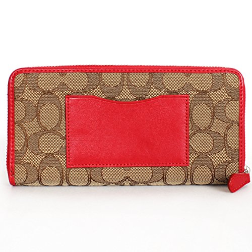 -. Title : Coach F53602 Outline Signature Accordion Zip Around Wallet Khaki/classic Red