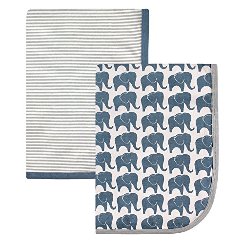 Hudson Baby Interlock Cotton 2 Piece Swaddle Blanket, Boy Elephant