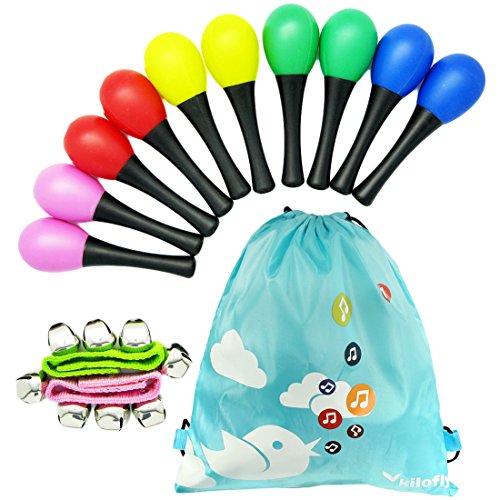 Play music at parties with kilofly Musical Toys Rhythm Plastic Egg Maracas, letting kids participate and enjoy fun and creative musical movements at an early age. The cute maracas are suitable instrument for preschool and elementary children. Comes with two random-color wrist bells, adding more harmonious and delightful tinkles in the party !