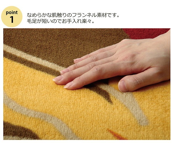 なめらかな肌触りのフラネルを使用したラグです。ホットカーペットカバーとしてもご使用いただけます。洗濯機で丸洗い可能なウォッシャブルタイプです。