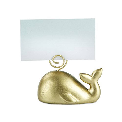 Kate Aspen 25323GD Gold Whale Place Card Holder (Set of 6), Gold, Blue and White