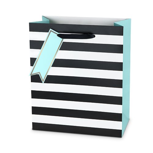Cakewalk Stripes Paper Gift Bag, Medium, Blue/Pink/Black