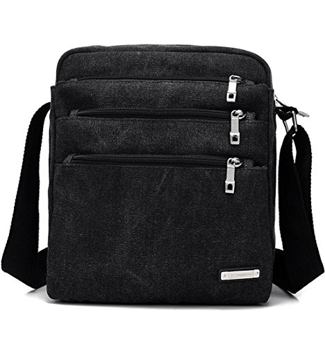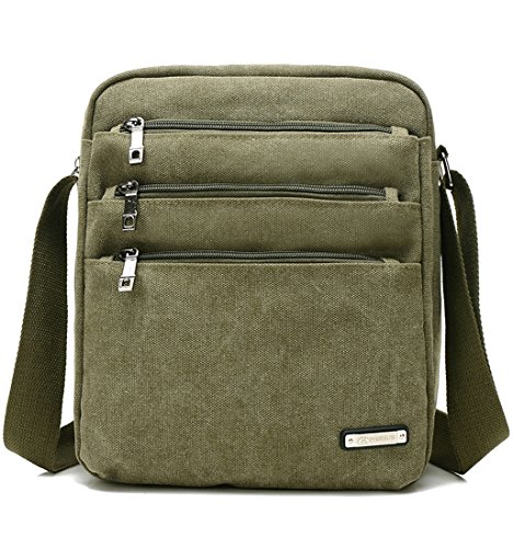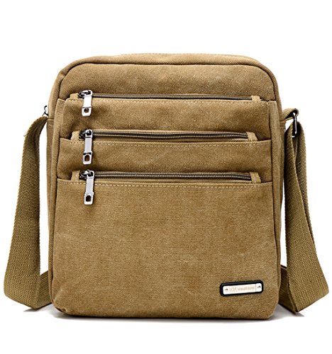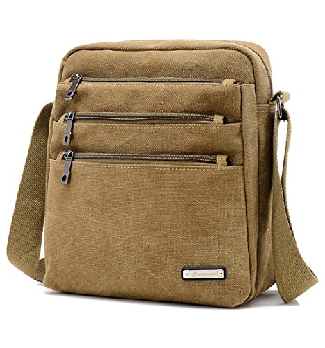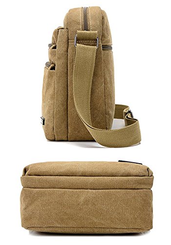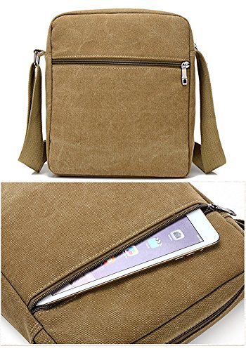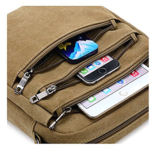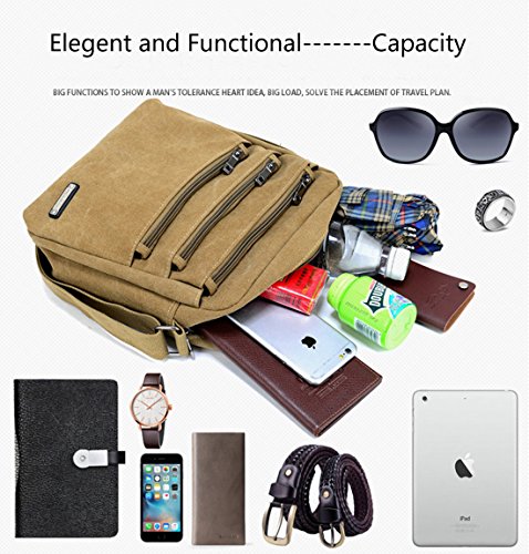 -. Title : Amarte Small Unisex Canvas Messenger Bag for School Travel Durable Vintage Shoulder Bag Pack Organizer Multi Pockets Crossbody Bag for Men Fit Ipad