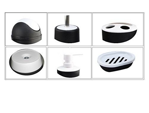 -. Title : 6 Piece Plastic Bath Accessory Bathroom Set Included Dispenser,Toothbrush Holder,Tumbler Cup,Soap Dish, Trash Can,Toilet Brush Set- Black