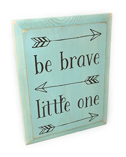 Be Brave, Little One Wooden Sign with Arrows Wall Hanging Decor (Old Baby Aqua)