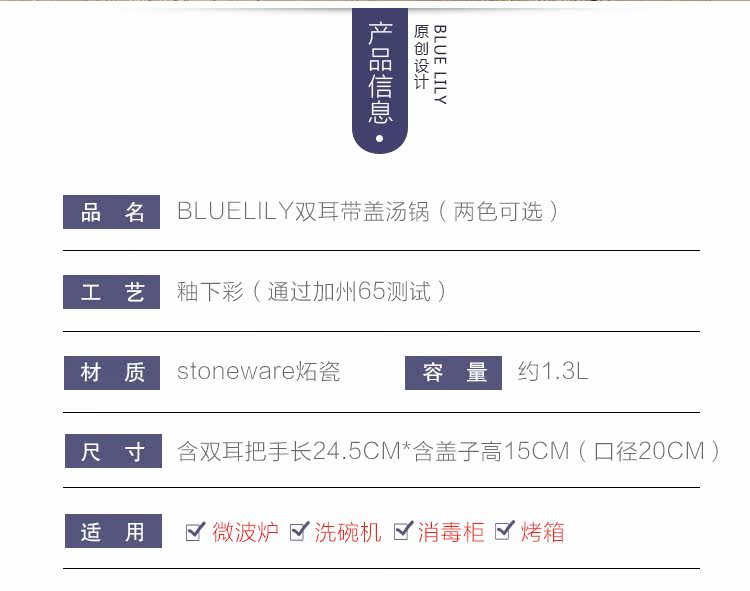品名:BlueLily双耳带盖汤锅(两色可选)