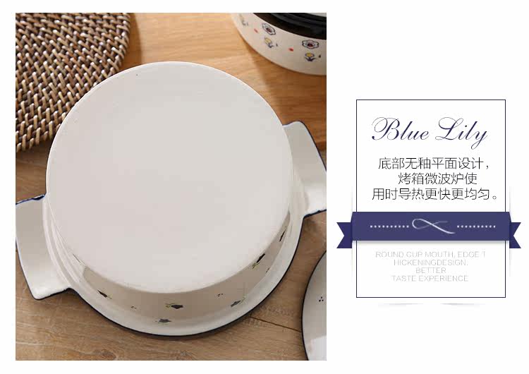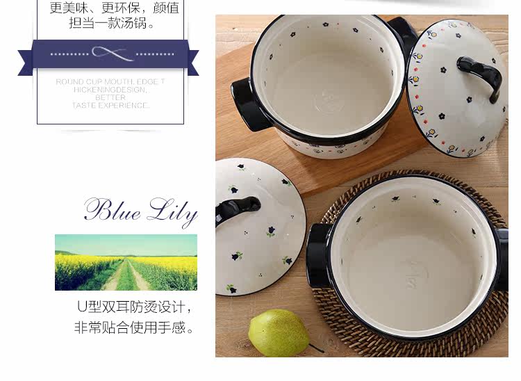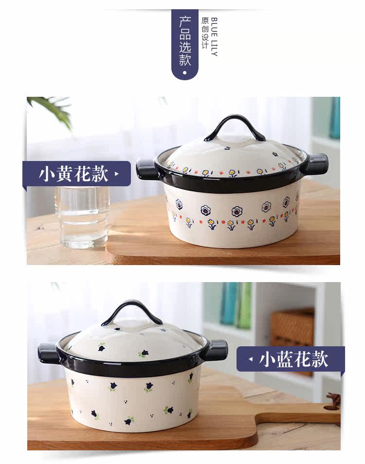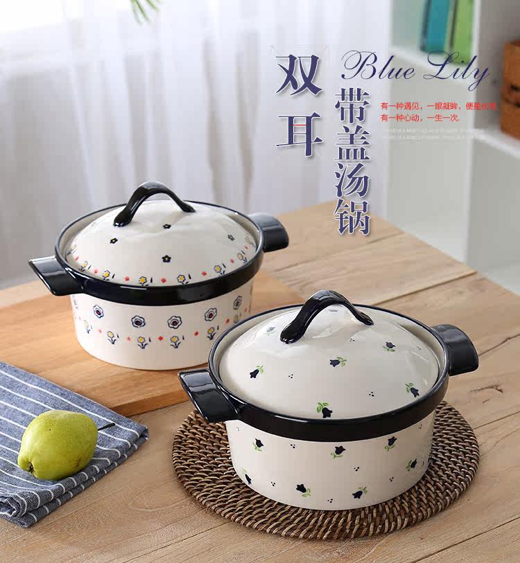 蓝百合家居 创意简约陶瓷带盖汤锅 双耳大号汤碗 烤箱微波炉适用