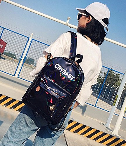 -. Feature : Size:26*12*38cm / Material:Laser PU leather / Shoulder straps: adjustable / Capctity:iphone,wallet,school book,ipaid, cosmetic etc. / Stylish, casual design, works perfectly for shopping, camping, traveling, beach trips and school days, the best gift for ladies, students and unisex teens