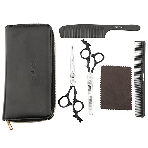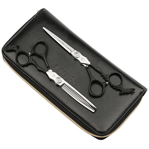 AKUTSU High End Razor Edge Professional Salon Barber 6.0" Hair Cutting / Thinning Scissors / Shears Set With Combs and Case