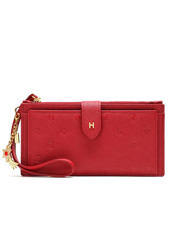[HAZZYS ACC] [ELLA] 레드 가죽 음각패턴 휴대폰 수납 장지갑