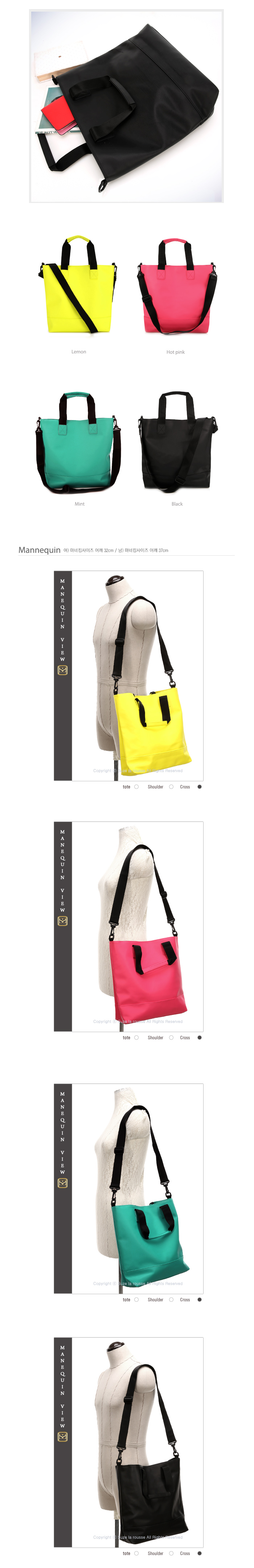 숄더에서 크로스로 2가지 연출이 가능한 넓은 수납공간과 비비드한 색감이 포인트로