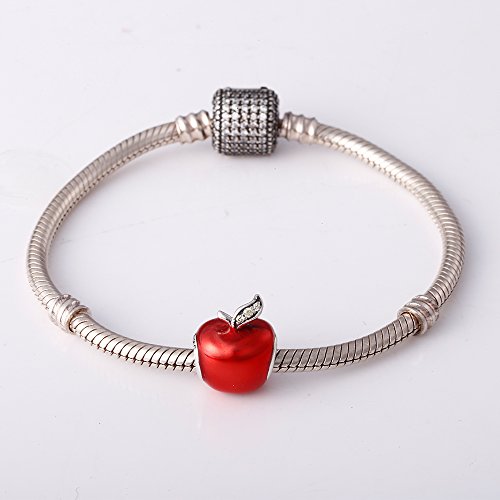 -. Title : 925 Sterling Silver Christmas Apple Charms with Red Enamel and Light Green Cz Stone for Charms Bracelet