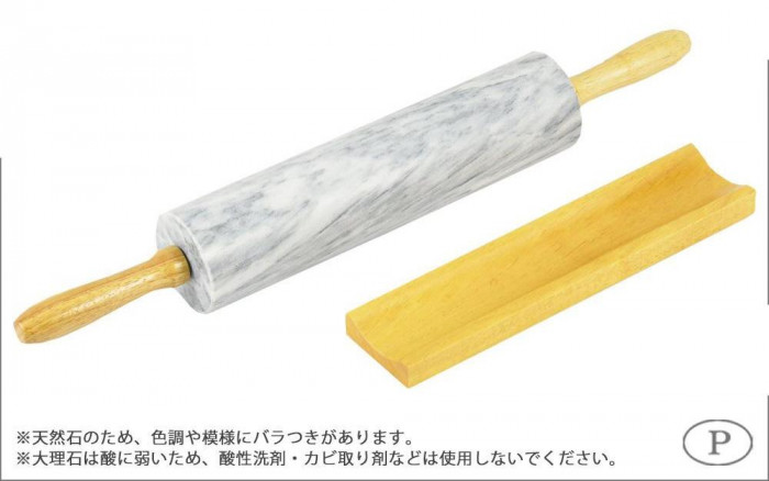 熱伝導が低い天然大理石の回転式めん棒です。生地がべたつきにくく、均一に伸ばせます。