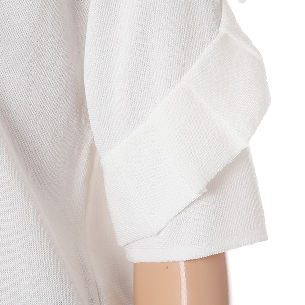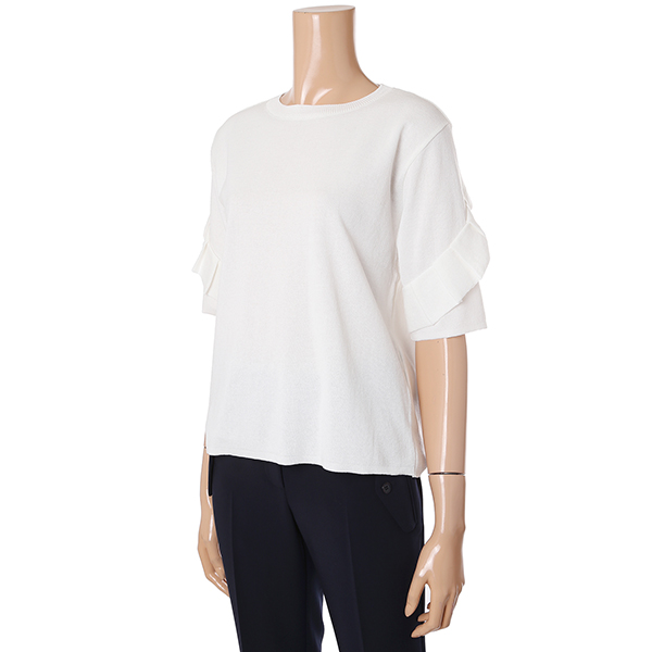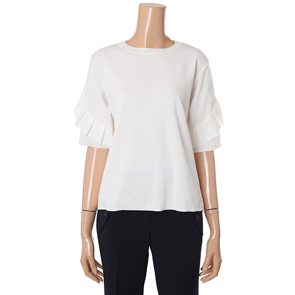 화사하면서도 여성스러운 느낌의 니트티셔츠입니다