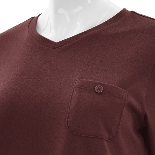 상의는 브이넥 스타일 와인 솔리드 컬러로 심플하게 제안되며